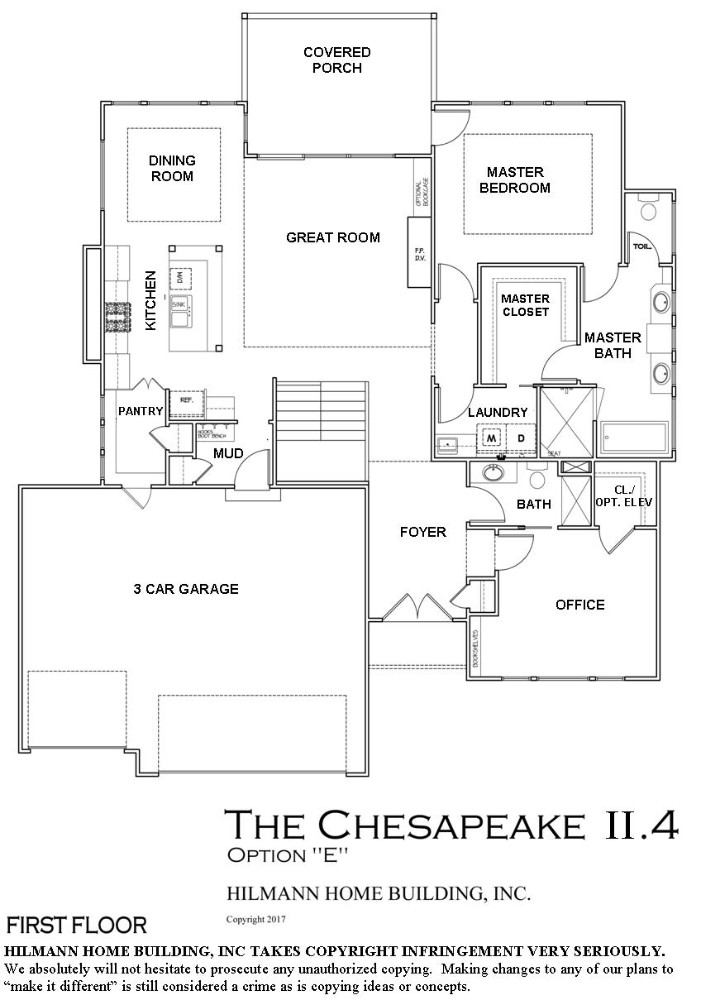 Introducing our newest addition to the already extremely popular Chesapeake series of plans. This distinctive reverse story and 1/2 boasts 4 bedrooms, 3 baths and a 3 car garage. The open main floor features an inviting vaulted entry and an office with full bath which can serve as a guest quarters. The closet in this room doubles as an optional elevator shaft. The kitchen features beautifully designed cabinetry with a very large island all suited with granite countertops. The huge walk-in pantry is equipped with custom shelving for lots of storage. The great room F/P has a custom built mantle with floor to ceiling manmade stone. There is a wonderful outdoor living area great for entertaining. The mud room off the garage has a custom designed boot-box with cubbies above and coat storage. The main floor laundry boasts a utility sink with cabinetry and unique 2nd access to the master bedroom closet area. The master bath contains beautiful marble countertops, a euro style walk-in shower, large soaker tub and large walk-in closet. The master bedroom has a convenient door leading to the covered porch area.